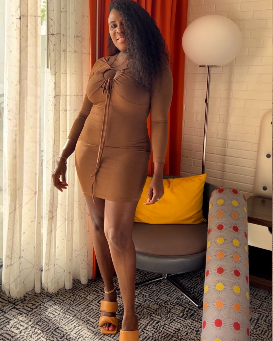 Introducing our beautiful fitted Hello Carrie beautiful. This dress shows your classy yet sexy style. Available in Small, Medium, Large and XLarge.