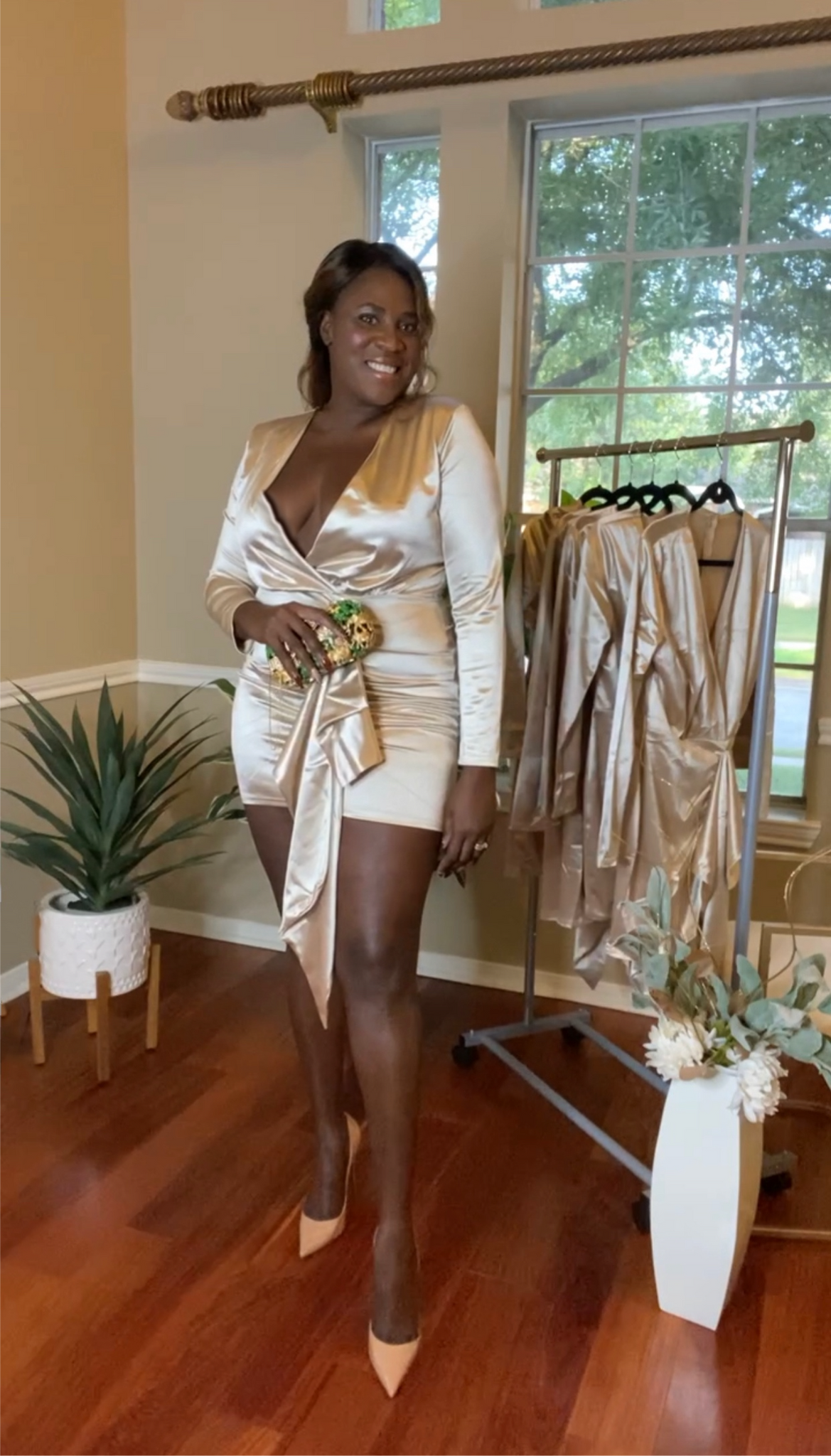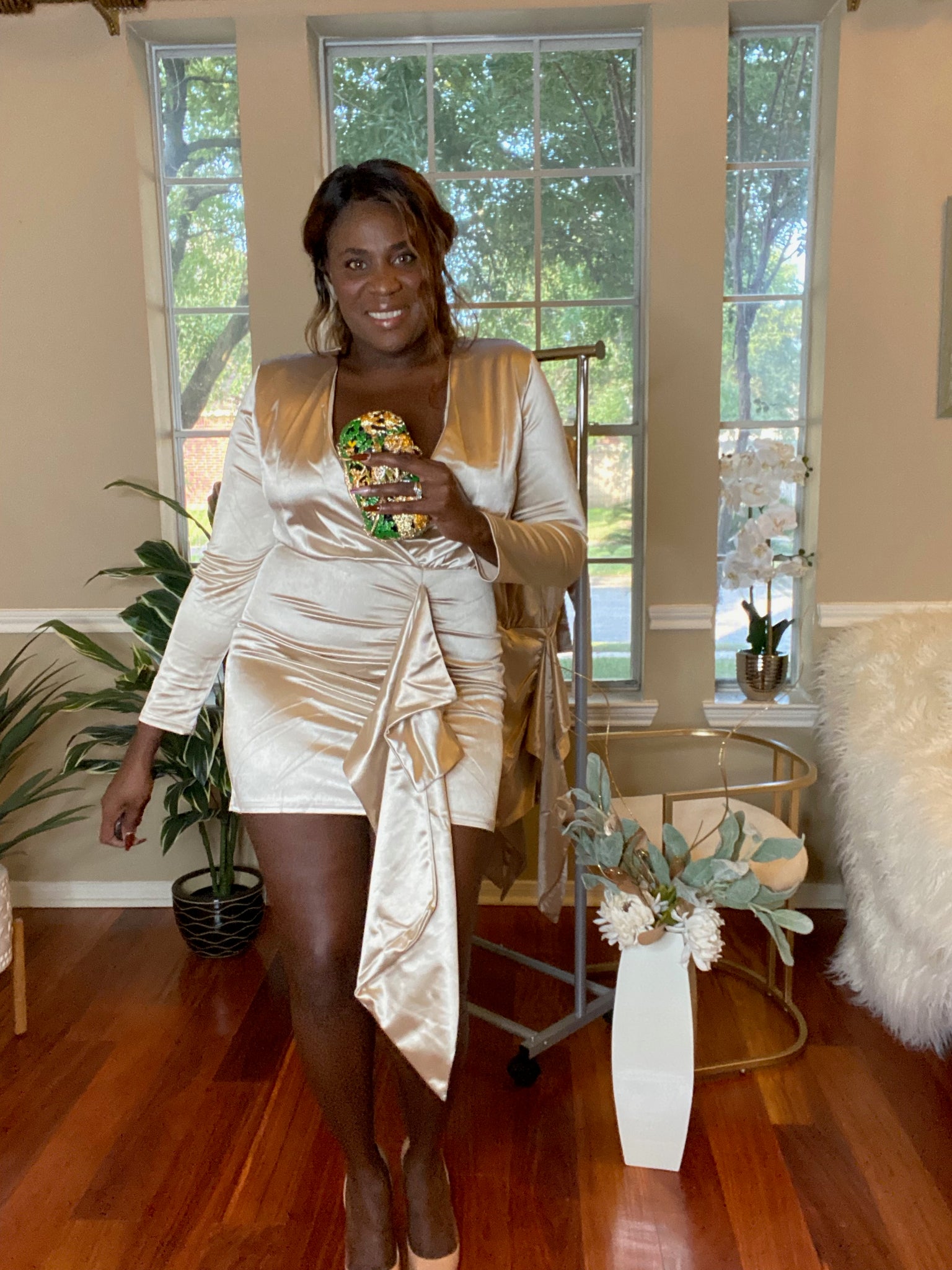 Our Posh Joleane is surely and eye stopper for a fancy dinner with friends, date night or any elegant event. Pair this dress with the beautiful Rain Forest Crystal purse seen in the picture and you are ready to go. This dress shows your classy yet sexy style. This dress will fast become your favorite dress to wear.