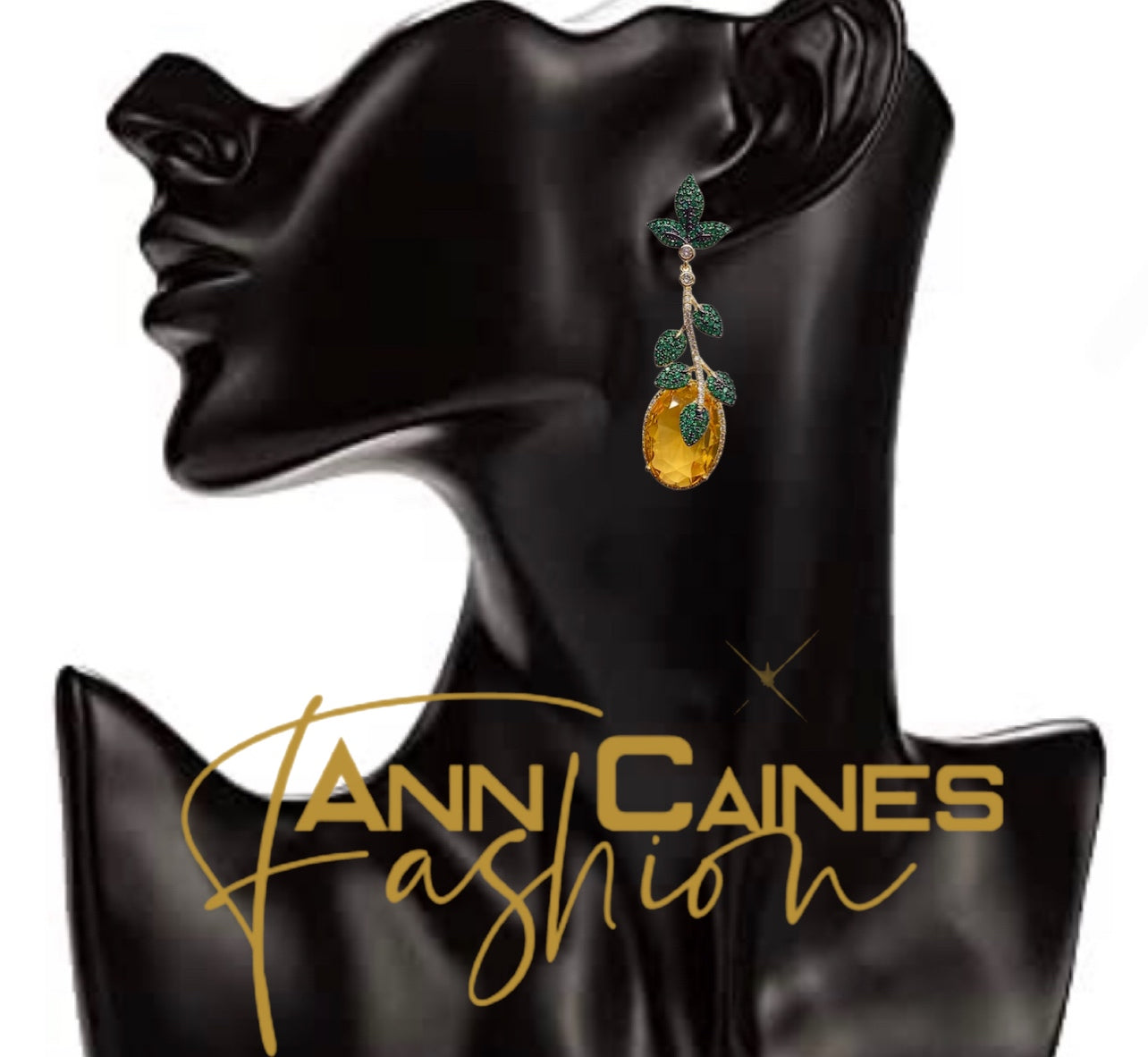Green Leaf / Yellow cubic zirconia earrings . Excellent quality.